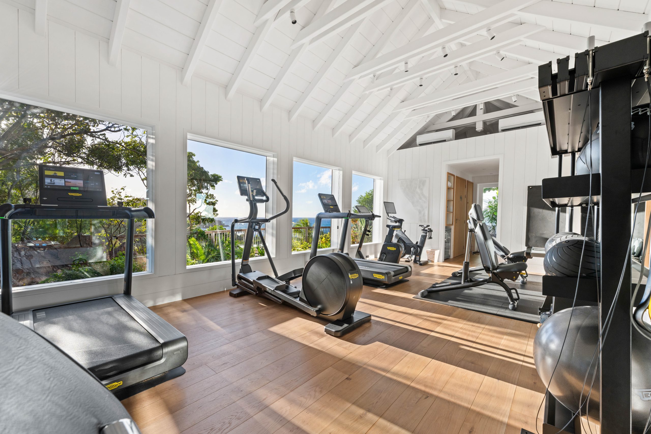 Eleva tu entrenamiento en el gimnasio de última generación de Le Toiny, donde el equipo moderno se encuentra con impresionantes vistas al océano. Ya sea que busques un entrenamiento intenso o una sesión revitalizante, cada detalle está diseñado para combinar rendimiento, comodidad y la energía serena de St Barths.